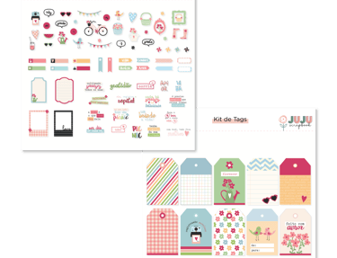 No total, vem 7 Papéis Básicos, 6 Papéis Estampados, 2 Papéis de elementos, 3 Papéis de Brinquedos, 10 Cards e 10 Tags!